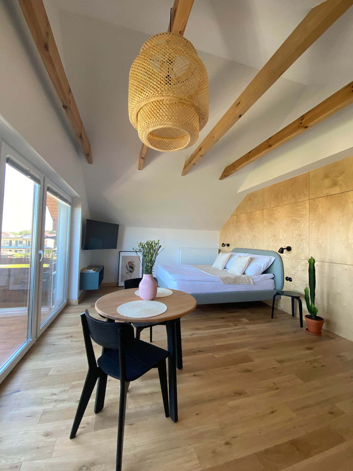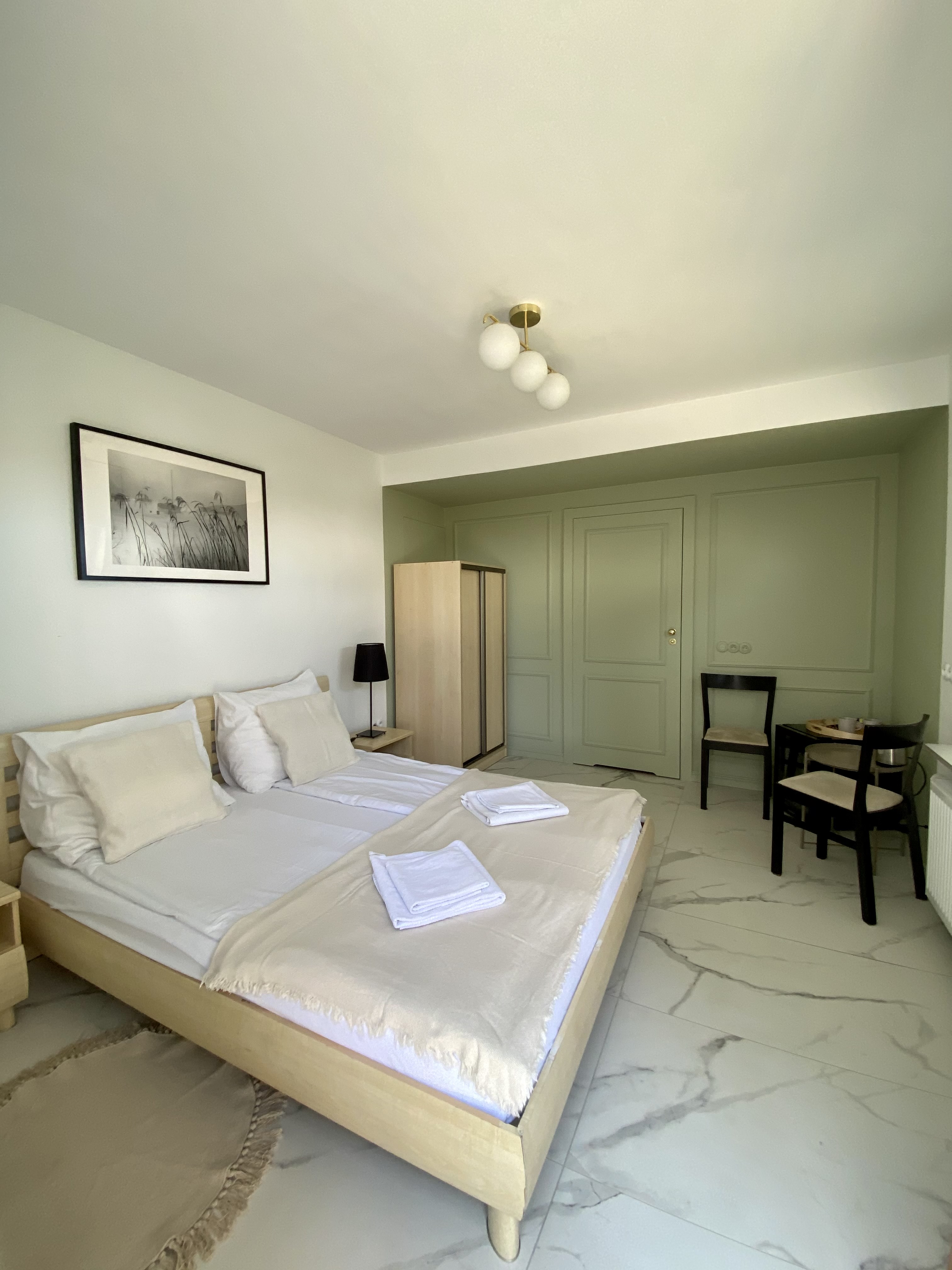W naszej ofercie znajdziecie Państwo przestronne apartamenty typu studio jak i komfortowo urzadzone pokoje. Każdy pokój posiada własną łazienkę, telewizor, lodówkę oraz wi-fi. Część pokoi posiada balkon z widokiem na morze. Dużym atutem jest ogród z miejscem do grillowania.